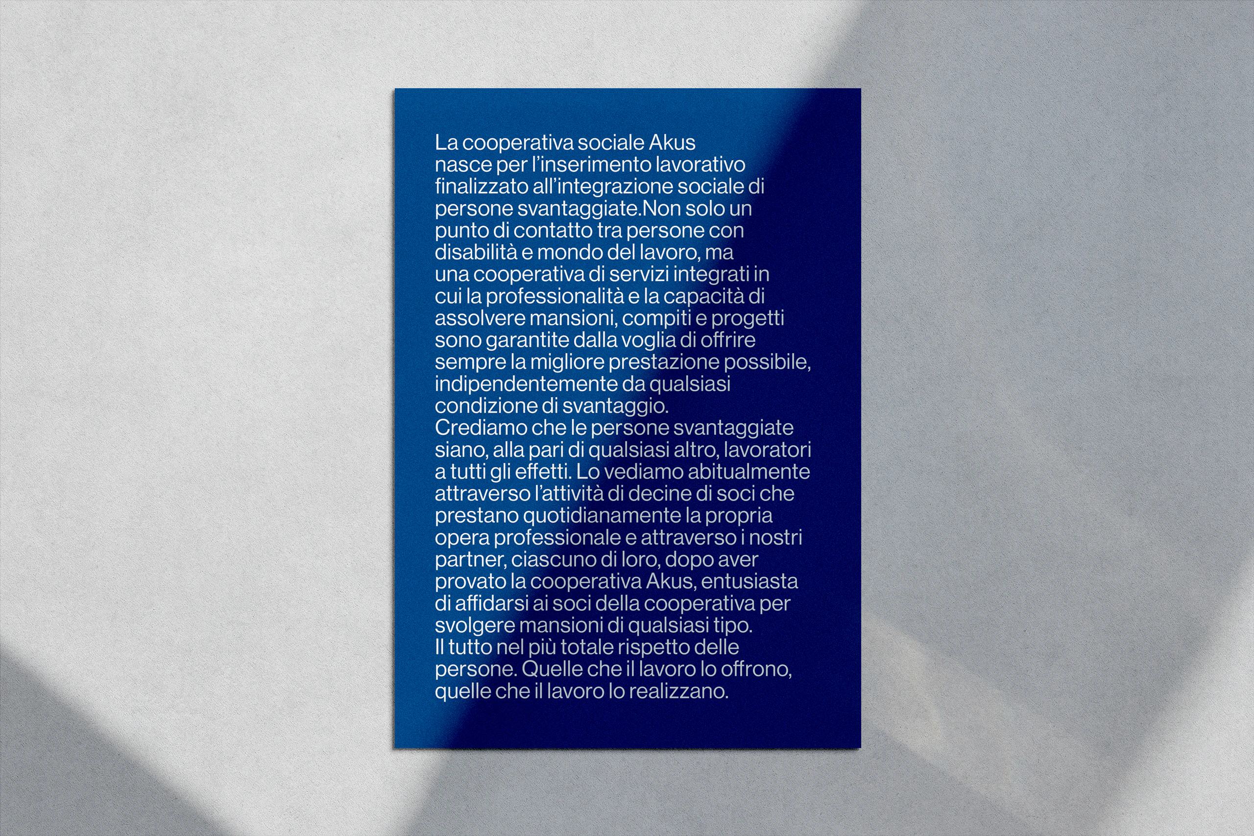 Un tono delicato e professionale, ma senza rinunciare alla freschezza e alla voglia di esplorare soluzioni di Design moderne e accattivanti che supportano l'intero messaggio e ne rafforzano il significato.